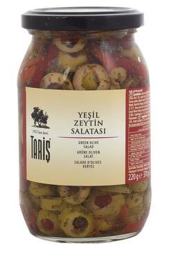 Dilimlenmiş sofralık salamura yeşil zeytinlerin kırmızı biber, zeytinyağı, sirke ve çeşitli baharatlarla harmanlanmış olarak sizlere sunulmuş bu ürünümüzü yemekleriniz ve aperatifleriniz ile birlikte afiyetle tüketebilirsiniz.